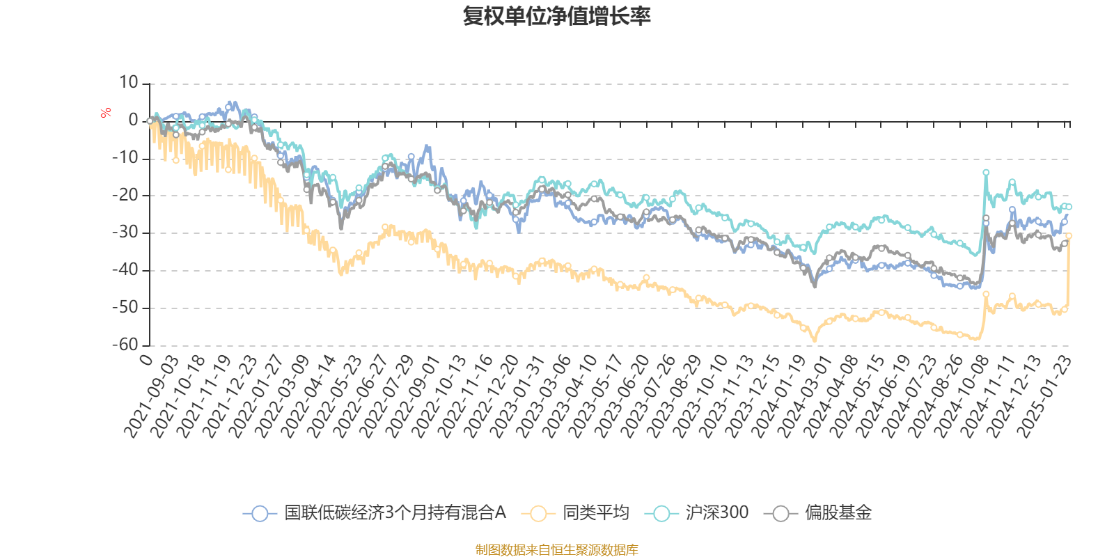 截至1月22日,国联低碳经济3个月持有混合A近三个月复权单位净值增长率为6.82%,位于同类可比基金60/646;近半年复权单位净值增长率为24.29%,位于同类可比基金62/645;近一年复权单位净值增长率为25.82%,位于同类可比基金125/633;近三年复权单位净值增长率为-19.01%,位于同类可比基金137/447。